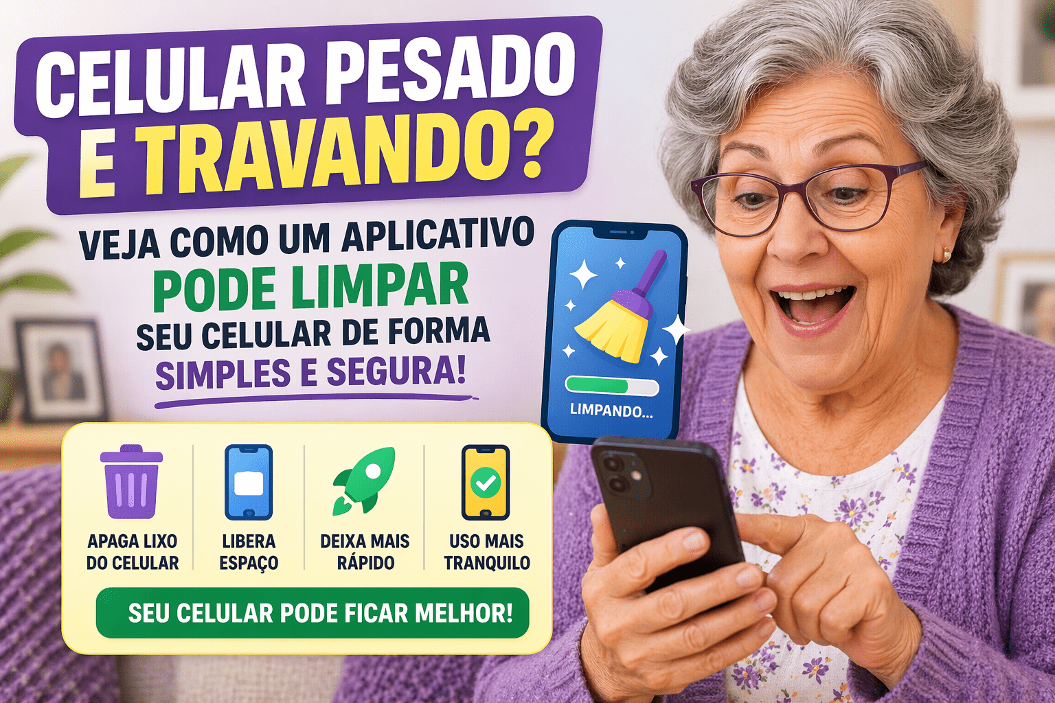 Para senhoras e idosas, isso significa mais facilidade para usar o WhatsApp, ver fotos, conversar com a família e aproveitar o celular sem estresse. Com cuidado e atenção, um aplicativo de limpeza pode ser um ótimo aliado para deixar tudo mais organizado e funcionando melhor.
